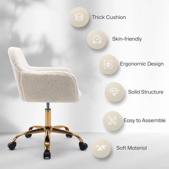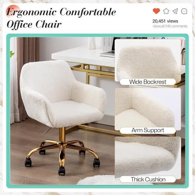 High Quality Fabric & Multiple ChoicesOur office chair is available in three different high-quality fabric options, allowing you to choose the one that suits your preference and style. Sherpa, Teddy velvet and velvet fabrics are carefully selected, not only soft and comfortable, but also very delicate and skin-friendly, the most important thing is that the three fabrics are breathable and do not swelter.