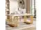 Versatile White Work Desk - With a 70-inch width, this simple desk provides ample space for multiple functions such as an executive table, writing desk, computer desk, study table, conference table, and even a dining table for 6-8 people. The desk top is composed of four pieces.