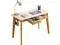 Mid Century Modern Desk: Sleek wood writing desk with drawer and cute hanging rod, crafted of solid rubberwood with warm white finish, clean lines and expand outward legs offer classic casual style
