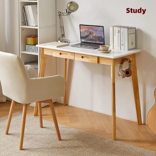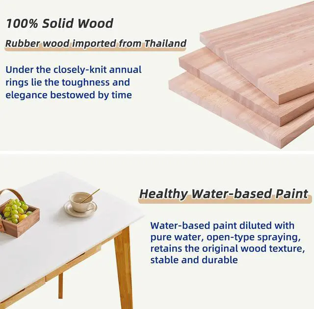 Solid Wood Material: This wood desk' s tabletop and legs are made of high-quality natural rubberwood that is sturdy and durable, and can be used for years. The drawers are made of paulownia wood that is lightweight and practical. Used water-based paint, which is non-toxic and harmless