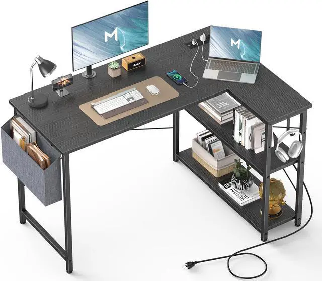 Reversible Shelves & Easy to Assemble: The office table with reversible design, the shelving units of the l desks for home office can be fixed on the left or right side according to the working scenario, so you can maximize the small space of the corner. The desk comes with detailed instructions and all the necessary tools for quick and hassle-free assembly. Just make sure you choose the right parts and screws during assembly.