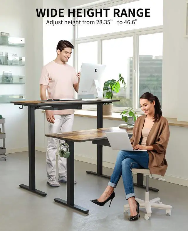 Smooth Height Adjustment: Freely select adjustable standing desk height, from 28.35 " to 46.46 ". Save your favorite three settings and smoothly switch the adjustable standing desk between them