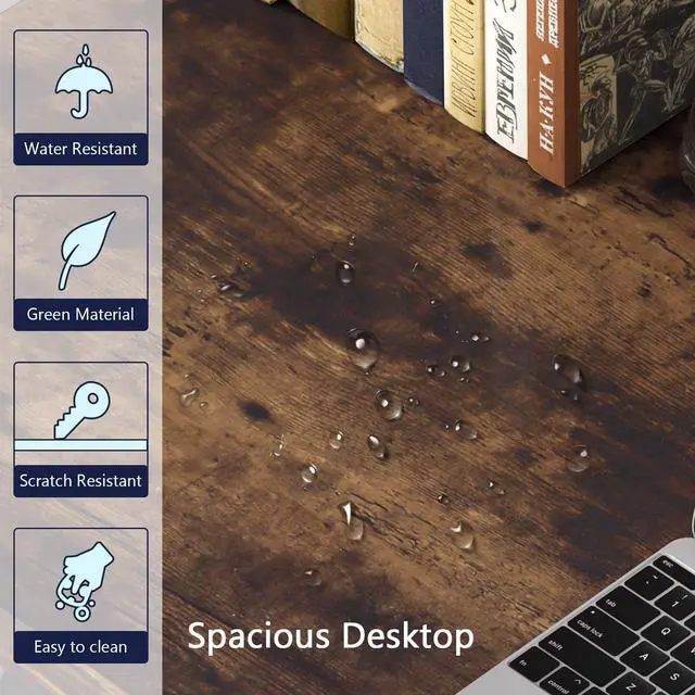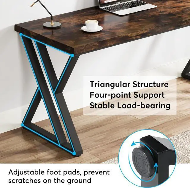 Spacious Desktop & Leg Room: Measuring 29.52 ' ' H x 55.12 ' ' W x 23.62 ' ' D overall, the large desk surface allows plenty of room for laptop, books, office supplies and paperwork, and the smooth top makes for easy cleanup and writing. Ample space under desk ensures any chair can fit under desk, and allows your legs relax after long day of working.