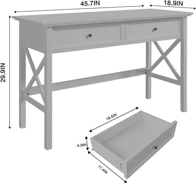 Storage Drawers: Computer desk with 2 drawers can provide you with ample storage space to hold your books, keys, photos, and the modern desk can also collect your makeup tools;
