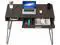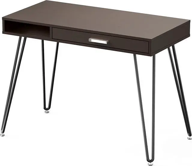 The beautiful work surface is finished in Espresso color with steel frames in a Silver finish.