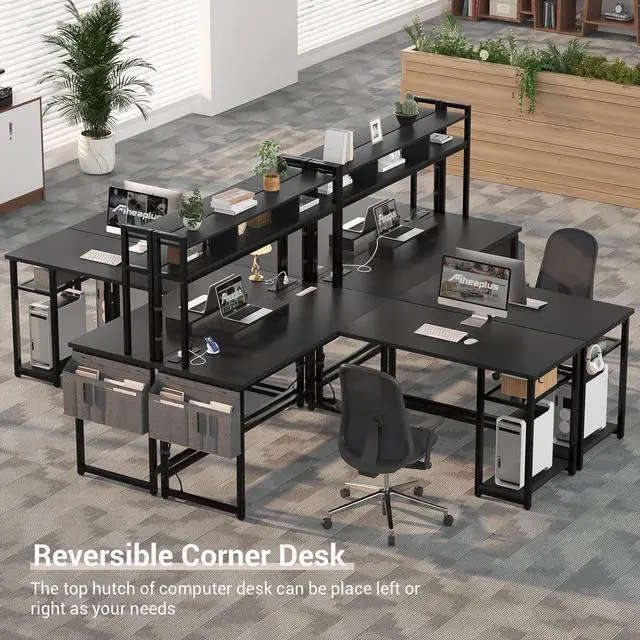 Reversible L Shaped Desk or Large Long TableOur home office desk with 4 ways using, you can choose to assemble it into an L desk or a long desk according to your needs. L Shaped desk is perfect fits perfectly in the corner while providing maximum space; two-person long desk allows 2 people to work or study together well.