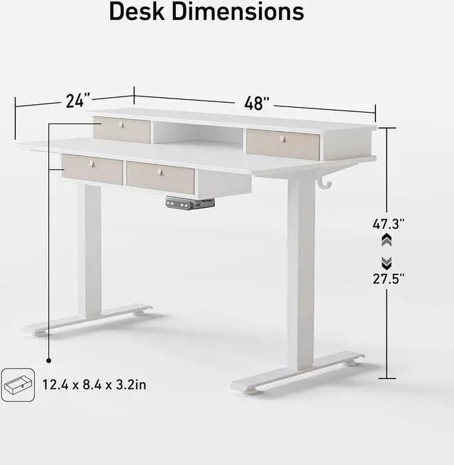 4 Drawers: " FEZiBO Storage Series" standing desk offers huge storage space for the various needs in home office time. (Dimension of detachable drawers 3.23 ' ' H * 12.4 ' ' W * 8.46 ' ' D Each)