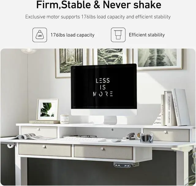 Trustworthy Standing Desk: An industrial-grade steel frame combined with a solid desktop allows 176 lbs weight capacity to support your ideal workspace setup
