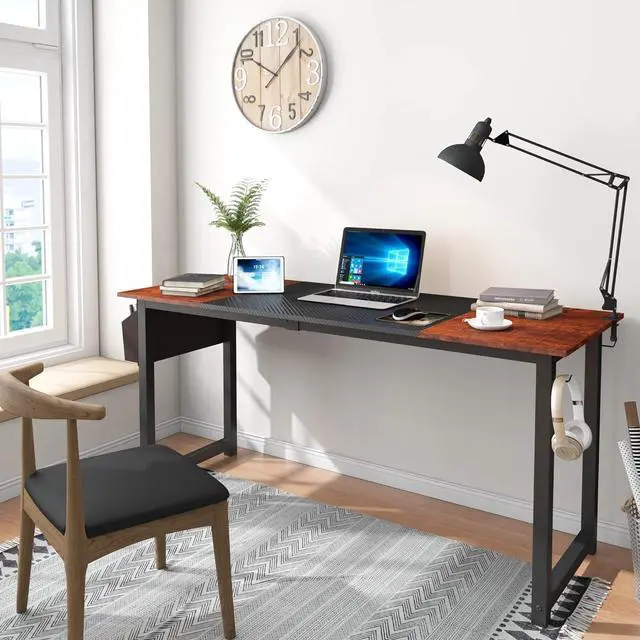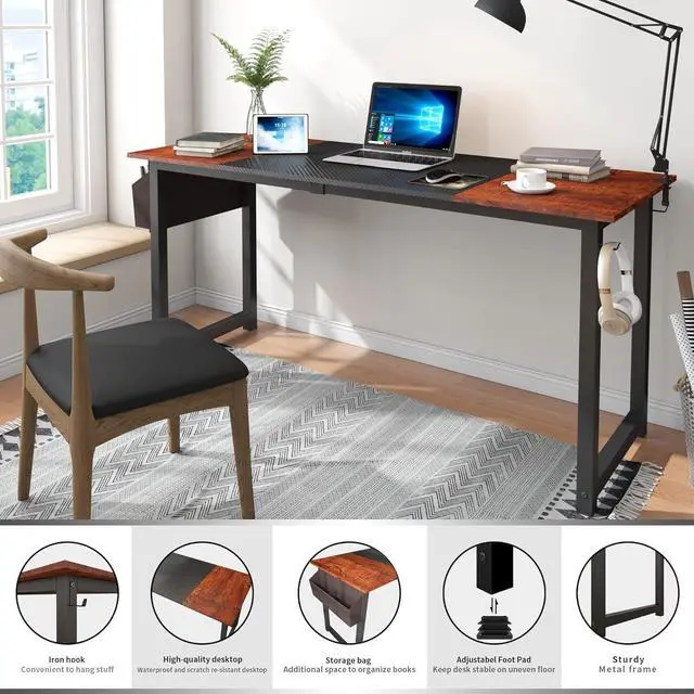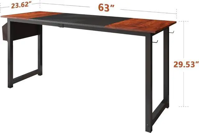 Spacious: The 63" x 23.6 " x 29.5 tabletop size gives you plenty of space. Supplies such as computers, books, printers and other office activities can be placed on the desktop. There are storage bags and simple hooks next to the table, which are easy to use. In addition, there is ample space under the table top to move your legs freely.