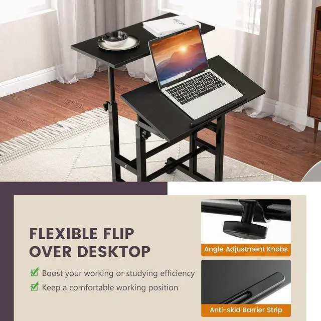 Rugged Structure Built to Last: Thanks to the heavy-duty metal frame, the height adjustable computer desk presents better sturdiness and a stronger load capacity. Together with thick and durable board, the rolling laptop desk is a reliable addition to your living space.