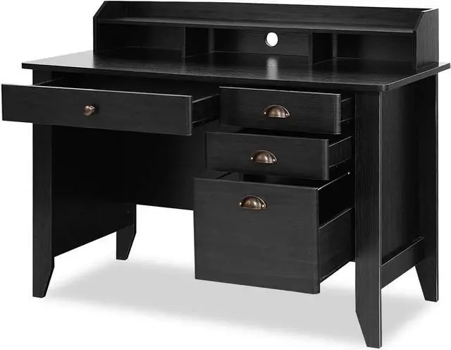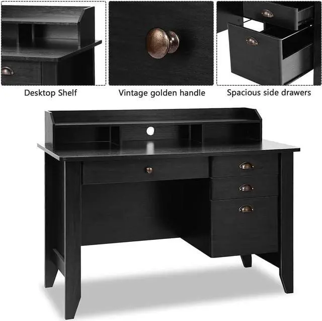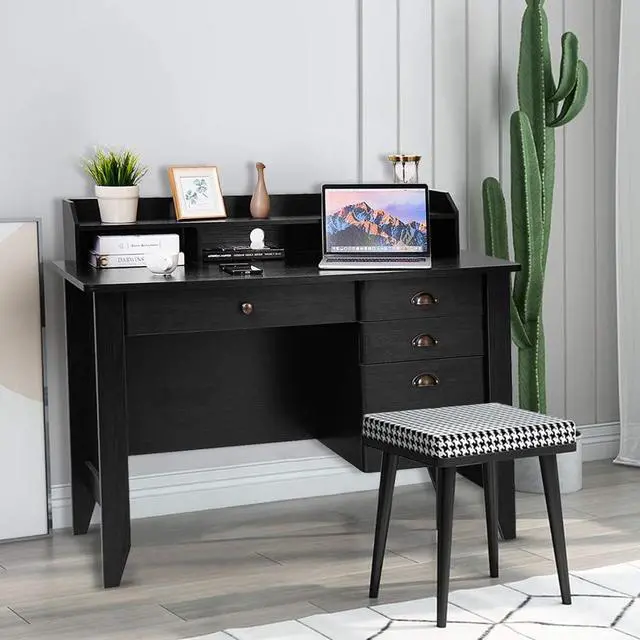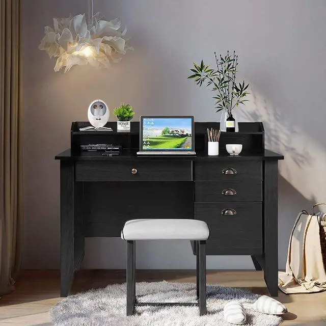 Ample StorageThis Wood Computer Desk comes with a smooth slide-out long drawer and 3 spacious side drawers for organization, storage and always-at-hand access to important items, offering large storage space for your daily supplies.