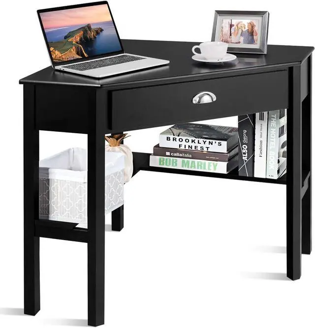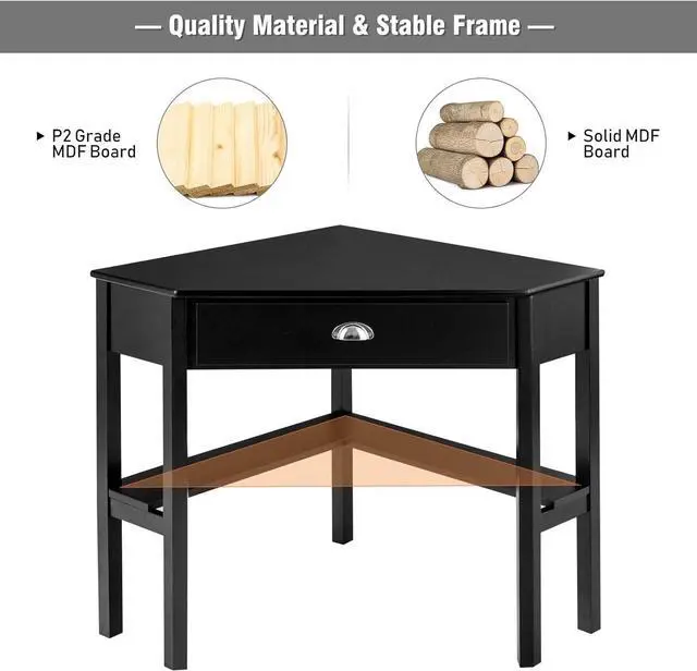 Large Storage w/ Spacious Tabletop Designed with a big drawer for all kinds of stationary and two open shelves below for piles of binders and books, this triangle computer desk is made to present an organized working environment for you. The accompany of the spacious and skin-friendly desktop makes working enjoyable.