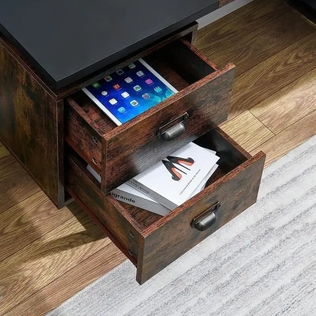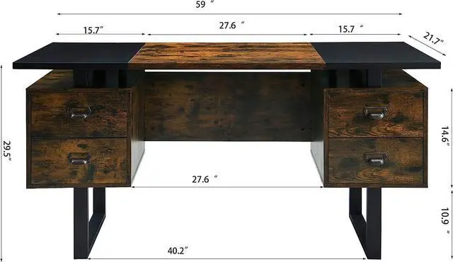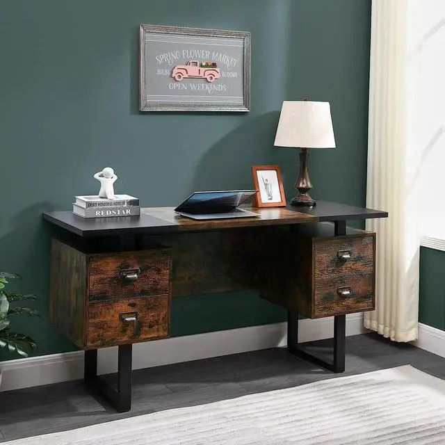 Unique Design With Rutic Style: The Color-Blocking Tabletop Brings A Different Impact To Your Vision And Can Relieve Eye Fatigue. The Computer Desk With 4 Large Drawers Can Easily Accommodate Your Books, Electronic Products, Pens And Other Handy Objects. The Whole Frame Is Made Of High-Material Metal, And The Whole Table Feels Atmosphere And Fresh. The Vintage Look Can Match Your Decoration Freely.