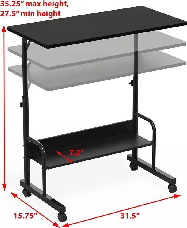 Mobility: rolling table with four wheels, includes two locking wheels.