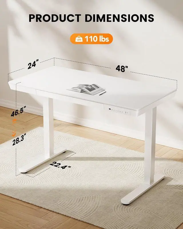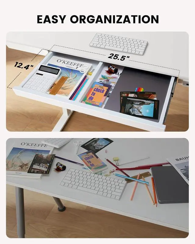 Organize Your Workspace: The adjustable standing desk has a dual-zone drawer that provides ample storage for office supplies and accessories. Enjoy a clutter-free desktop so you can focus on the most important tasks and projects throughout the day.