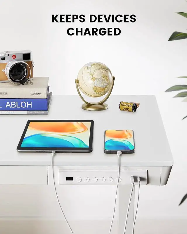 Integrated Charging Solution: Keep your devices fully charged thanks to the USB-A and Type-C ports built into the front panel. Connect your smartphone, tablet, or headphones directly into the electric standing desk so they are always powered and easy to access.