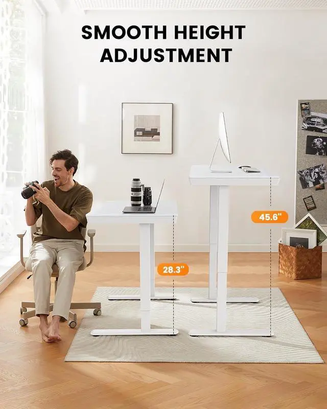Flexible Height Control: The adjustable standing desk boasts a wide height adjustment range of 28.3 to 46.5 tall, ensuring optimal comfort whether you are standing or sitting. Four preset buttons allow you to quickly transition the sit stand desk between your saved height settings.