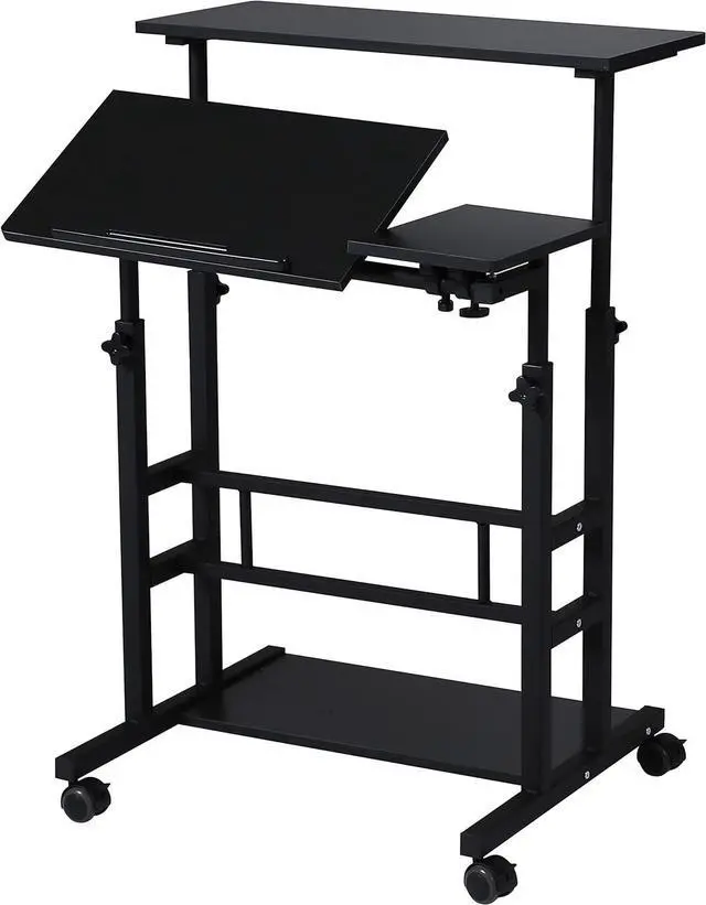 Height Adjustable - This ergonomic mobile stand up desk is height adjustable from 28.3 inches to 47.2 inches. Transition from sitting to standing position by adjusting the rotary knobs and manually lifting the platforms. Suitable for most male/female user, this sit/stand conversion desk will meet all your requirements