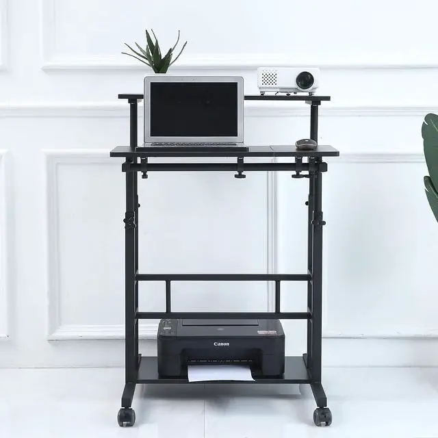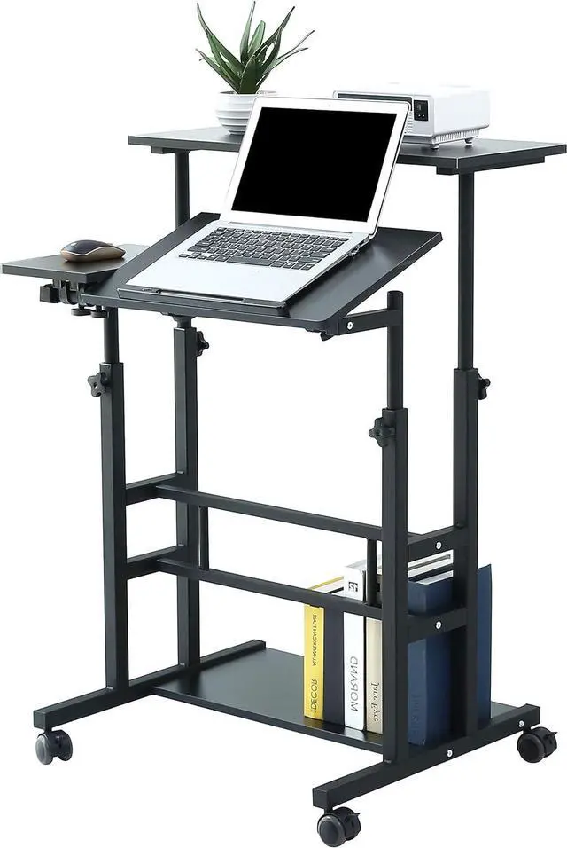 UNICOO Portable Mobile Standing Desk, Versatile Stand Up Desk Converter with Adjustable Height, Ergonomic Home Office Workstation on Wheels for Easy Movement, Rolling Laptop Cart (U101-Black)