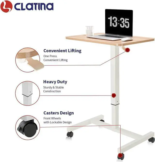PNEUMATIC SPRING LIFT: This height-adjustable laptop table is mainly driven by a powerful gas pressure spring system. Simply press the handle on the side of the desk, and this vertical desktop height will move from 30 inches (about 76.2 cm) to 45 inches (about 116.1 cm). Enjoy a faster and quieter desktop lift.