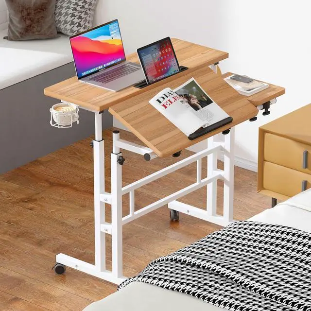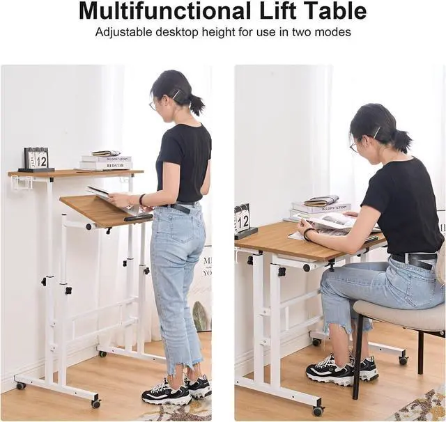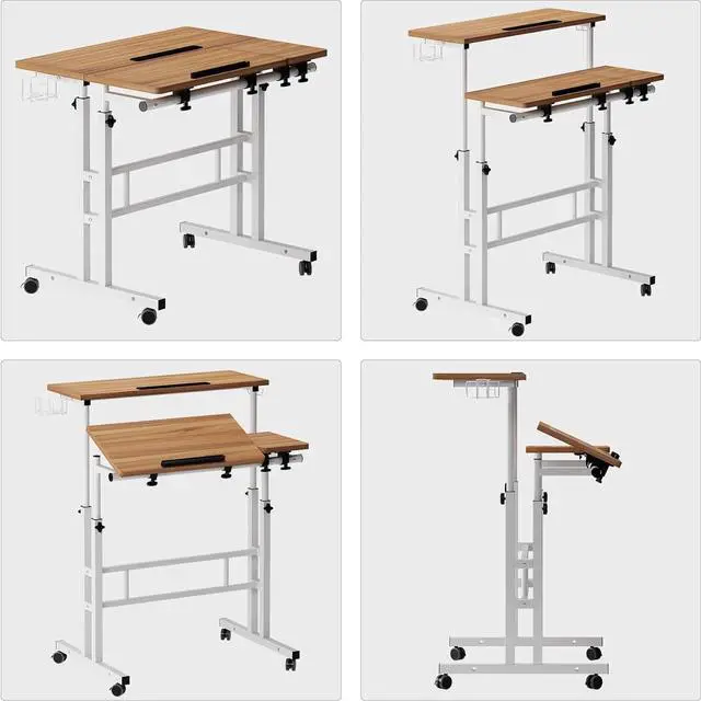 Durable Material: The panel of rolling desk is made by particle wood with high glossy finish, very smooth if there is any dust/water stains, you only need to wipe it gently; This desk frame utilizes heavy-duty and powder-coated metal materials, which ensures stability and durability.