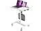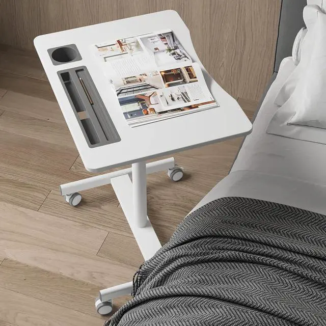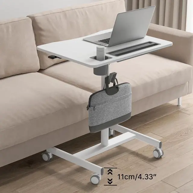 Portable and Versatile: This mobile sit stand desk with cup holder and dedicated slots for tablet and pencils, top surface measures 27.6 inches wide to support even the largest laptop, the convenient storage hook meets hang a bag or backpack out of the way. Ideal for use as overbed table tray, laptop cart or medical and educational purposes