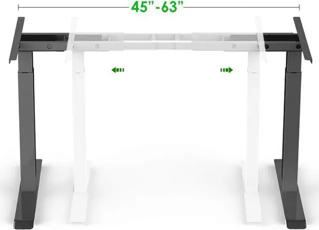 Adjustable: The heavy-duty steel construction desk frame allows you to adjust the desk height from 28" to 47". It' s also width adjustable from 45" -63" to fit different desk tops.