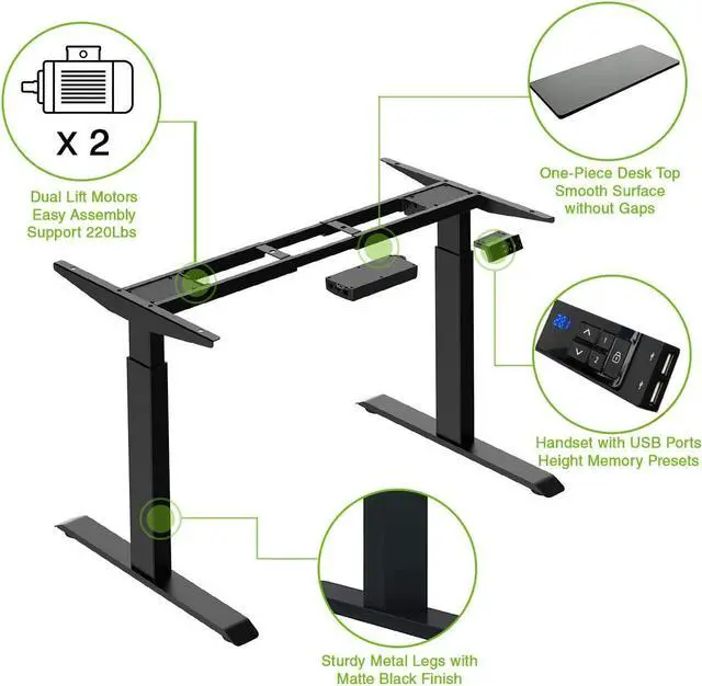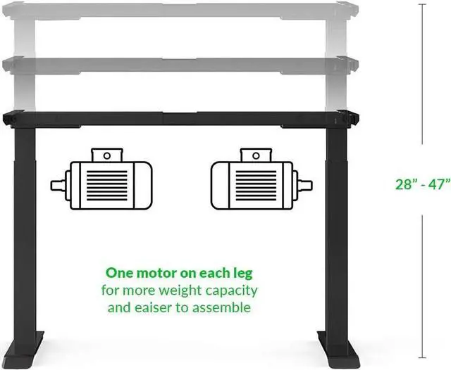 Dual-Motor: Stronger, Faster and Much Easier to assemble. This motorized standing desk has TWO powerful & smooth motors, delivering 220 Lbs of weight capacity for your sit-and-stand workstation.
