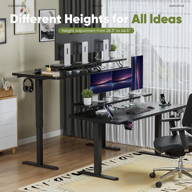 Memory Electric Lift Standing Desk: Say goodbye to fatigue from prolonged sitting with smooth height adjustment ( 28.7 to 46.4 inches) at the touch of a button. Easily store standing/sitting positions or preset your preferred height.