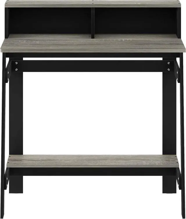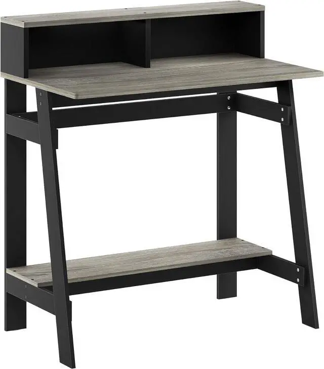 Features attached desk hutch and firm Construction with natural industrial look.