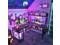 Game table & Smart LED light The L shaped gaming desk with RGB LED lights provides more choices for gaming enthusiasts! It features over 60000 colors and 29 flashing modes via APP or remote control. With Led music sync function and built-in sensitivity adjustable mic, the color of led light will change with the rhythm of the sound and music. And with timer function, just enjoy it in a smart way, creating a gaming atmosphere.