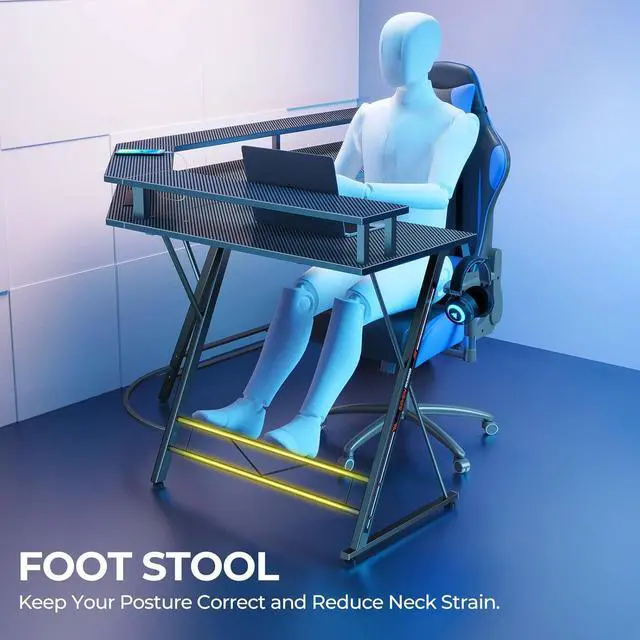 Space Saving: The gaming desk is equipped with full monitor stand that allows for more space to store your equipment and also allows you to sit with better posture.