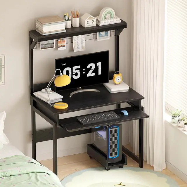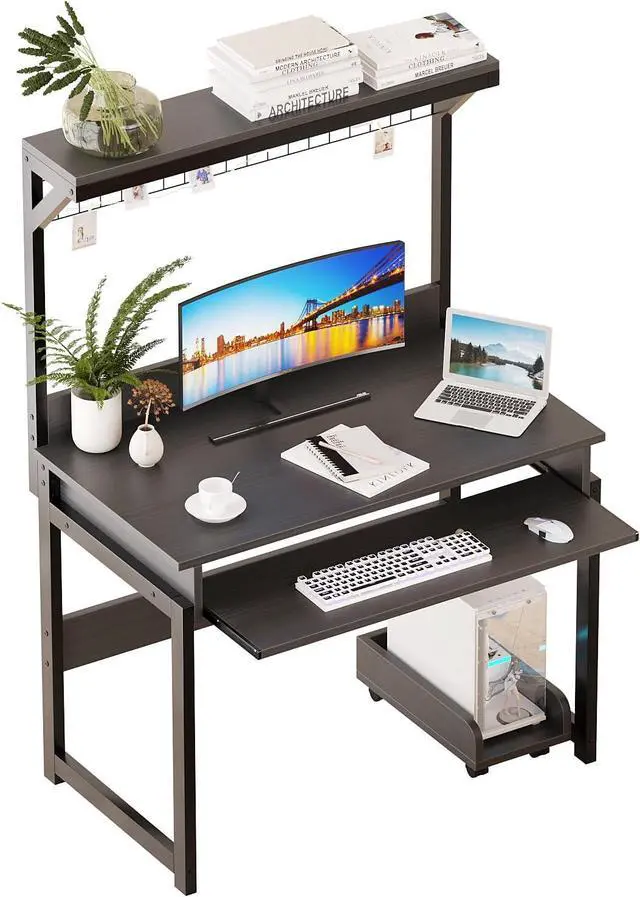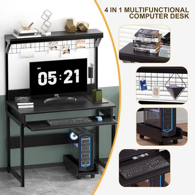 • Functional Computer Desk: This all-in-one office desk with shelf, keyboard tray, Open hutch and CPU stand can efficiently store various items,Small desk with hutch is compact, suitable for various small spaces