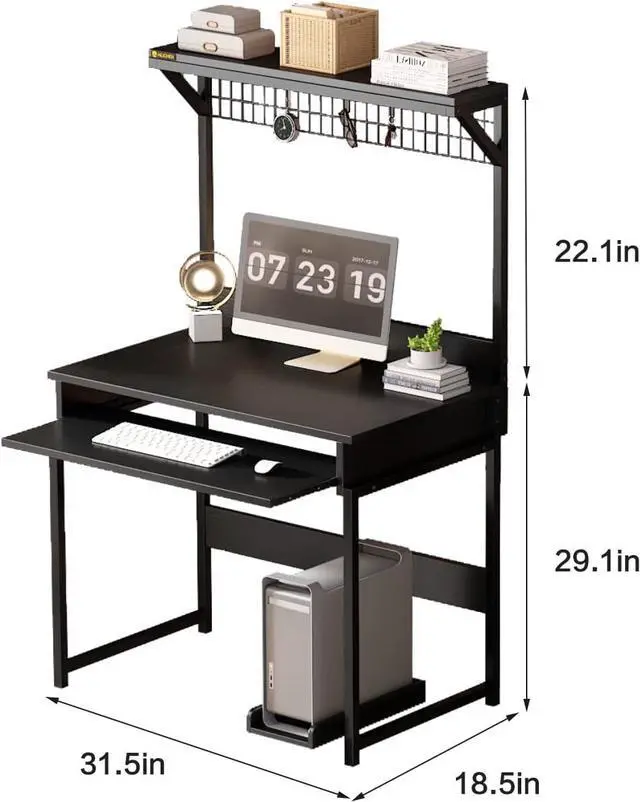 Enough Storage Space: 31.5 inch Small Desk for Small Spaces. The TOP hutches provide extra room for small potted plants, decorative ornaments, clock, photos, calendar etc
