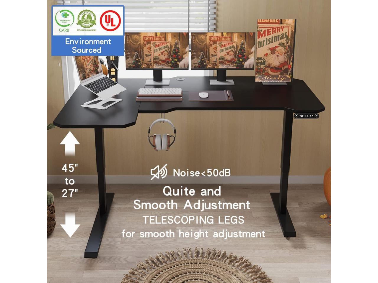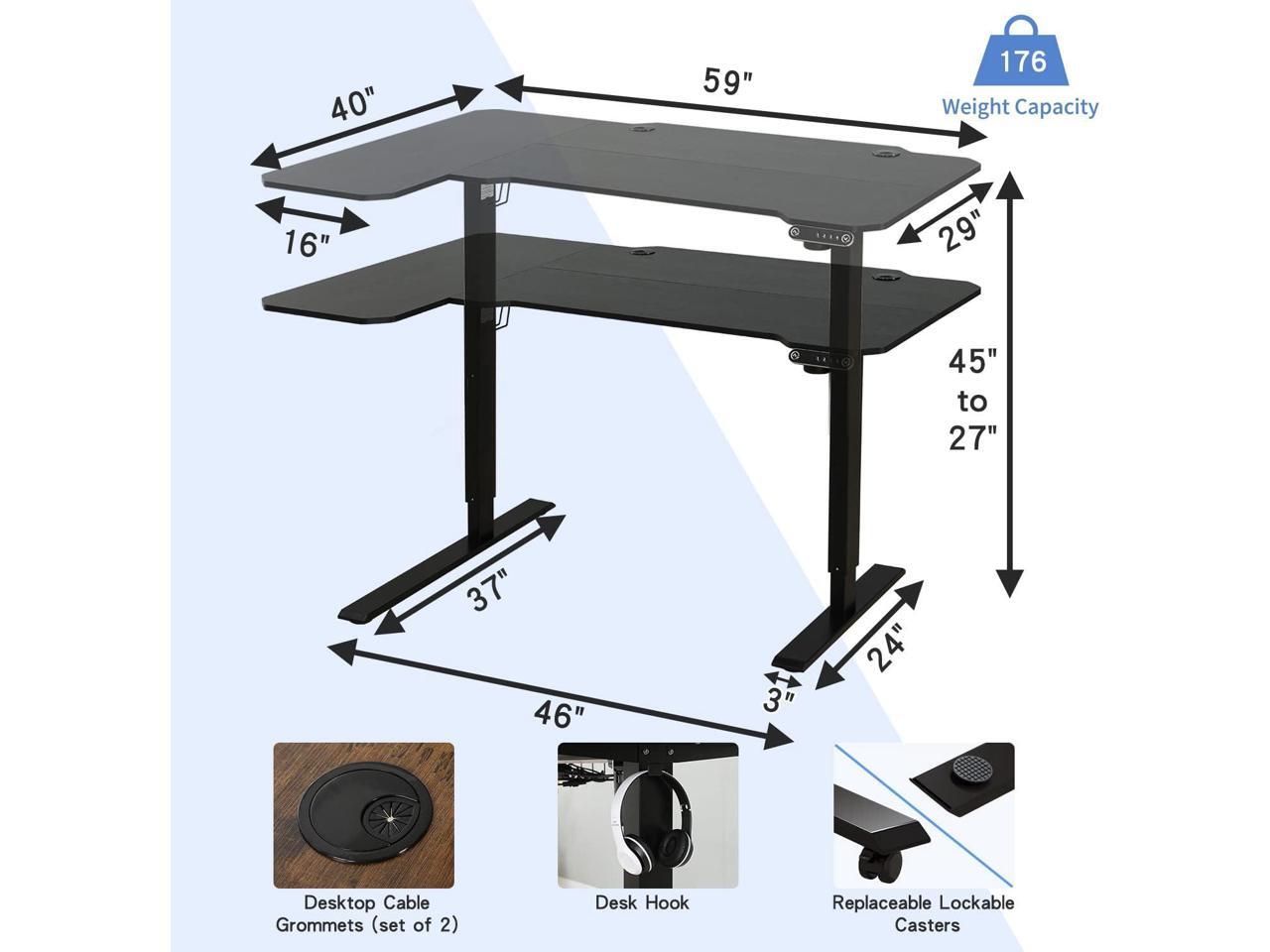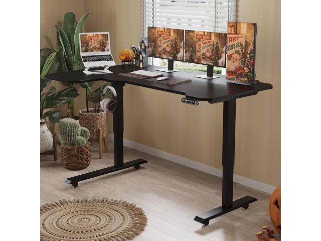 L-Shaped 59" Height Adjustable Electric Standing Desk, Sit and Stand Up Computer Desk For Home Office with Splice Board (Black Top, Black Frame)