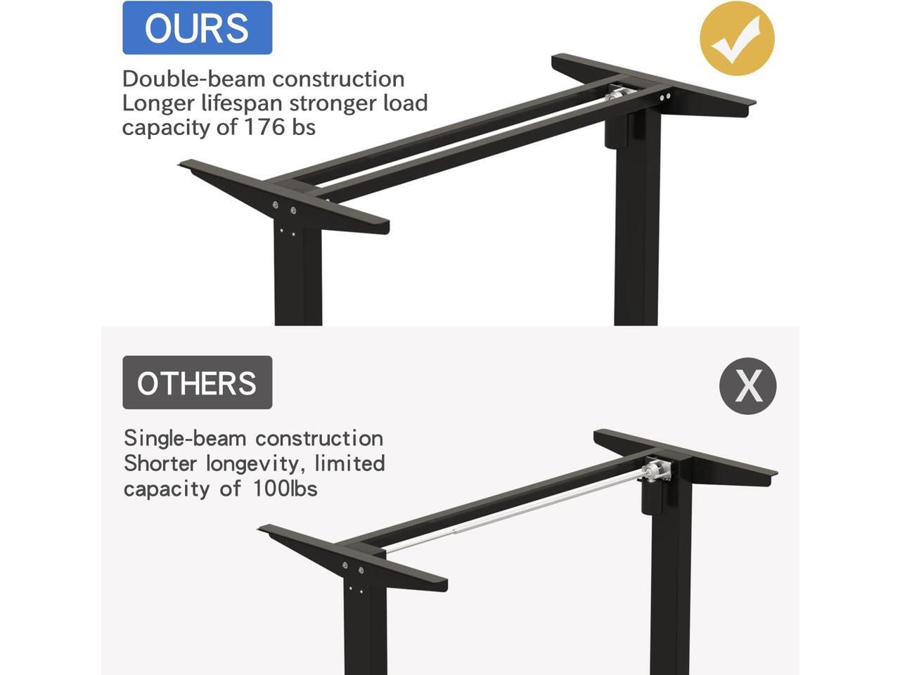 - Electric Height Adjustable: BUNOEM standing desk comes with 4 preset memory buttons which help customize to the desired heights from 27" to 45" inches with collision-avoiding feature.Both the home office rising experience and quality of the products are trustworthy. This height adjustable desk is supported by a very strong double beam metal frame.It can hold up to 176 Lbs.