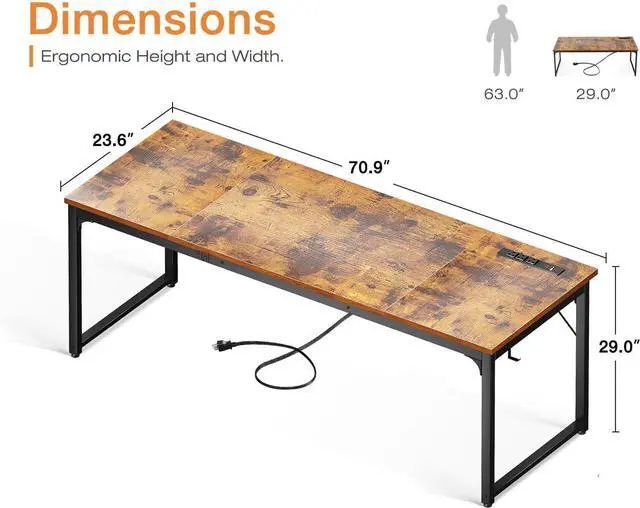 Large Desk Panel Dimension 70.9 " (L) x 23.6 " (W) x 29.0 " (H). This large computer desk offers large space for monitors, printers as an excutive desk or gaming desk, which is a good choice for home office work including writing, gaming, study. Besides, the long desk with ample desktop can work as your conference table or large workstation.