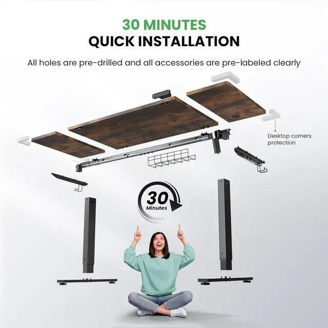 Customized Sit Stand Desk: The reliable motor operates quietly (under 45 dB) and smoothly, all your things stay steady&secure in motion. The intuitive control panel allows you to preset 3 preferred heights, switch between sitting and standing positions has never been easier. Child lock for total peace of mind.