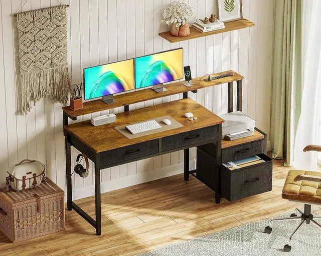 Fabric Drawers: This small desk with storage features a professional file drawer that neatly stores books, letter, and A4 legal documents. Three additional fabric drawers keep office supplies and gaming gear organized and within easy reachtransforming your workspace into a clutter-free zone