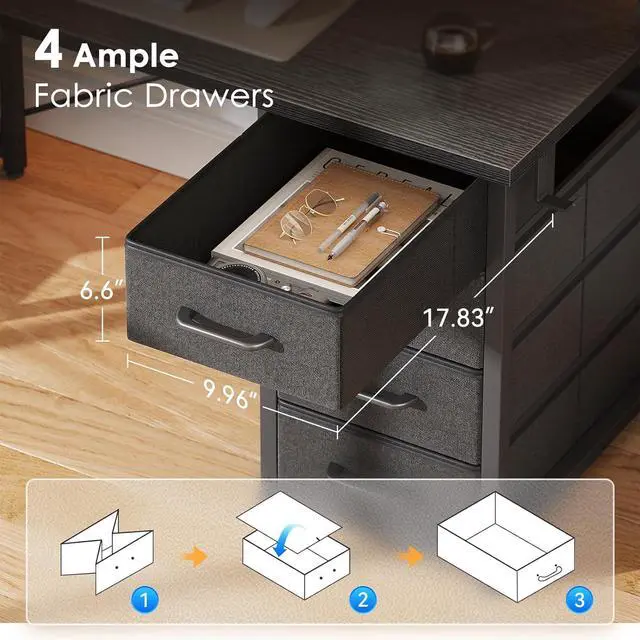 Product IntroductionOur sophisticated office desk combines elegant design with cutting-edge functionality, featuring a sleek black finish that complements any modern workspace. Designed for professionals who value both style and efficiency, this desk transforms your working environment into a productivity hub. The contemporary aesthetic makes it equally suitable for corporate offices, home workspaces, or gaming setups. ter desk with 4 drawers