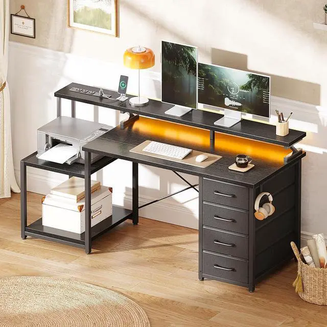 Core Functional FeaturesEngineered for maximum utility, the desk boasts a robust dual monitor stand that optimizes screen placement for ergonomic viewing. The integrated USB charging station provides convenient device power access, while the ambient LED lighting system creates an ideal working atmosphere. Four generously sized storage drawers offer organized space for office essentials, and the dedicated printer shelf keeps equipment accessible yet unobtrusive.
