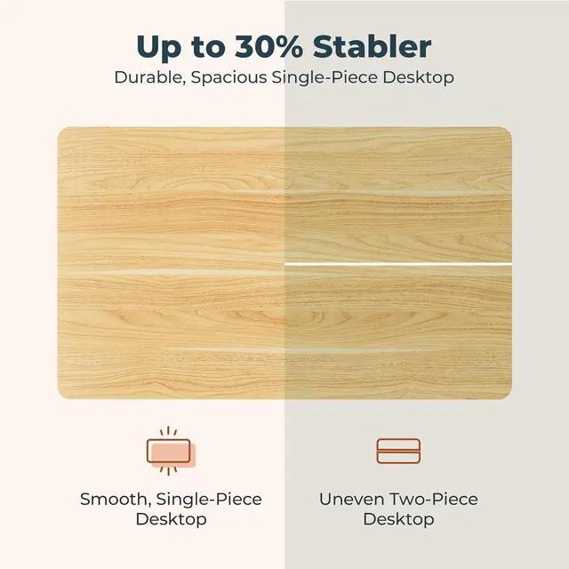 Seamless One-Piece Desktop: No gaps, no wobblethis one-piece height adjustable desk features a smooth, super stable surface! You can safely place your laptop, keyboard, and work documents without slipping, and the seamless design means no hidden dirt (easy to clean). Plus, this height adjustable desk adds a sleek, modern look to any home office space.