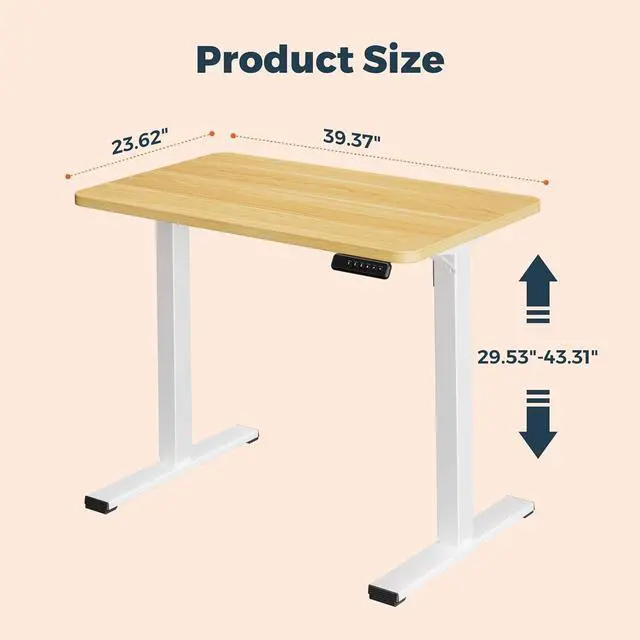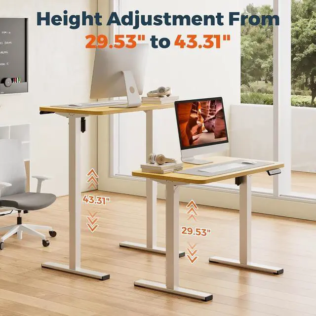 Durable & Quiet Stability: This sit stand desk is built with a solid industrial-grade alloy steel frame, ensuring the desk surface stays stable and durable for years (even with heavy office supplies). The desks quiet motor operates at less than 50 decibels, so you can switch between heights seamlessly and noise-freeno disturbance to your video calls, focused work, or family.