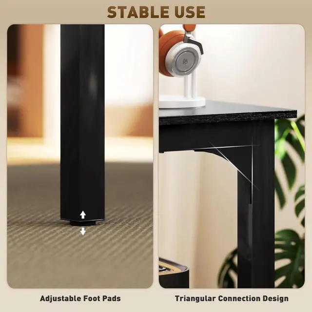 Robust Materials: This melamine-coated particleboard and powder-coated steel frame PC desk features a triangular connection design and adjustable foot pads, providing a stable, reliable surface for work or study
