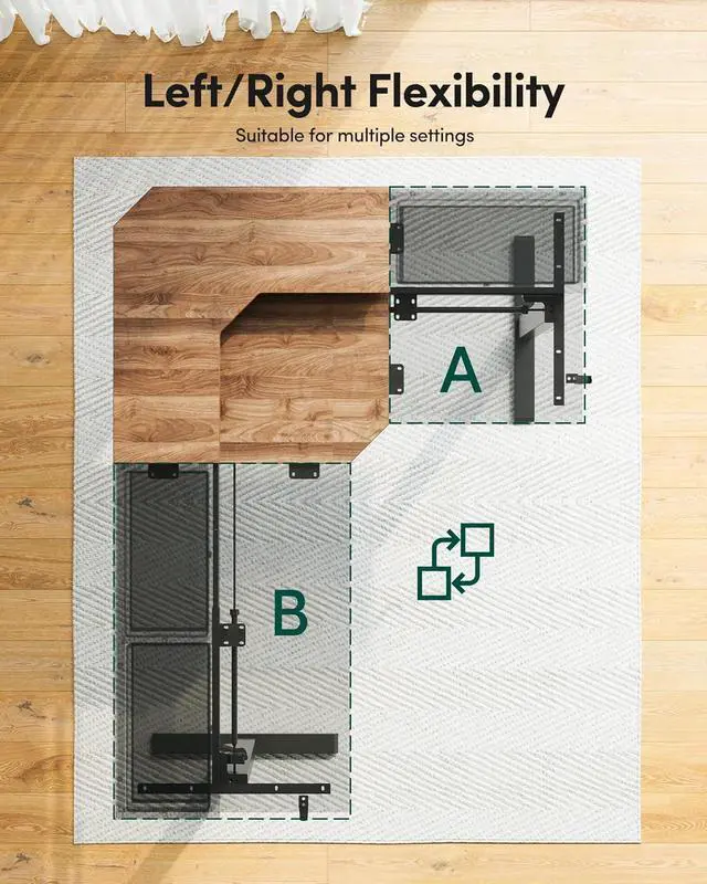 [Reversible L-Shaped Top] This L Shaped Electric Standing Desk features a unique flip design. Swaps left/right long sides freely, fitting small studies and gaming rooms perfectly. As a Home Office & Gaming Height-Adjustable Table, its reversible tabletop gives more space. Left holds laptops. Right leaves space for writing or coffee. Maximizes corner space