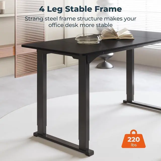 Solid Build for Unmatched Stability: Our adjustable desk, fortified by a robust four-legged structure, exemplifies durability. This framework significantly bolsters stability, curbs unwanted movement, and is capable of supporting substantial loads up to 220lbs, ensuring a secure and well-organized computer workstation that highlights the fusion of design and longevity.