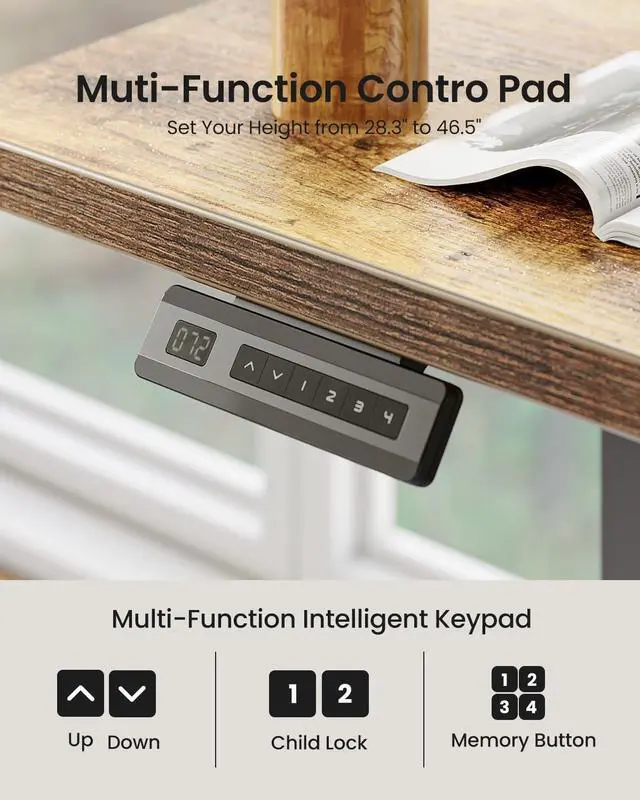 Electric Height AdjustableFezibo L shape standing desk has 4 preset buttons to customize your desired heights from 28.3 " to 46.5 ", smooth convert sitting to standing--the variety of height choices satisfy your multiple tasks.