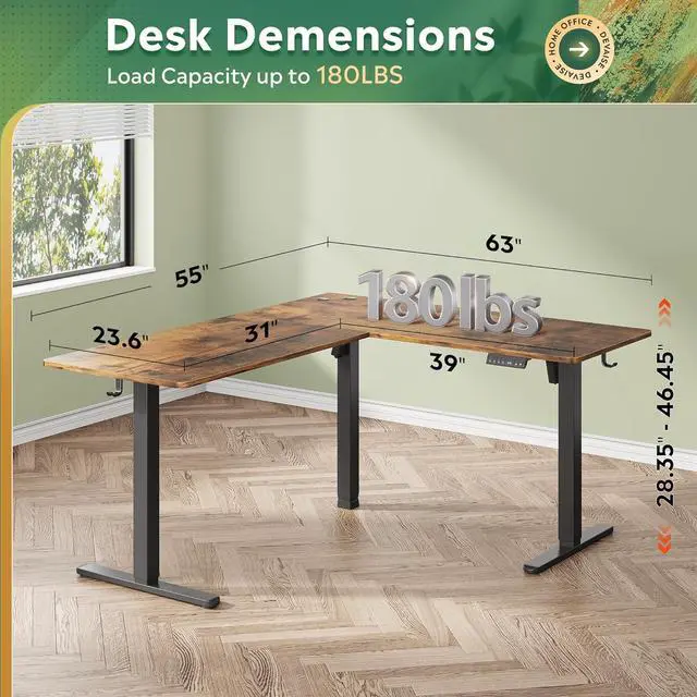 Large workspace - This L shaped standing desk is designed to fit perfectly in different spaces, providing extra workspace with 63x55 inch tabletop and flexible right/left orientation for all your needs.