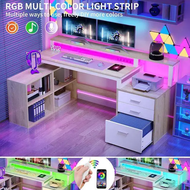 Smart LED Light Strips: Our corner office desk features a beautiful RGB LED light strip, flexibly controlled by a phone app or light strip switch, and you can customize any color you like via app. Plus, choose from various modes including music sync and timer functions to enhance the mood and inspire creativity while working