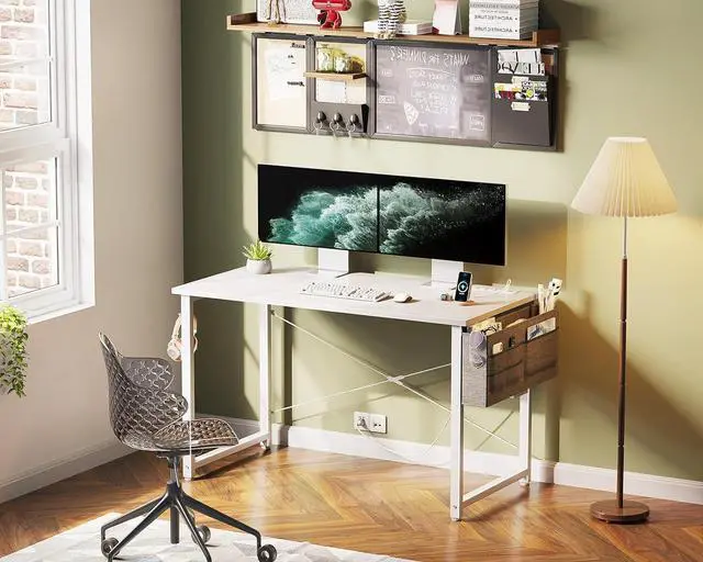 Space-Saving and Stylish: Our small desk is designed for efficiency, making it compact yet stylish. It fits seamlessly into any room and adds a modern flair to your decor. Whether it' s for home, classroom, or office use, our dedicated desk with outlets provides the ideal workspace for work or study. Perfect for users of all ages and roles.